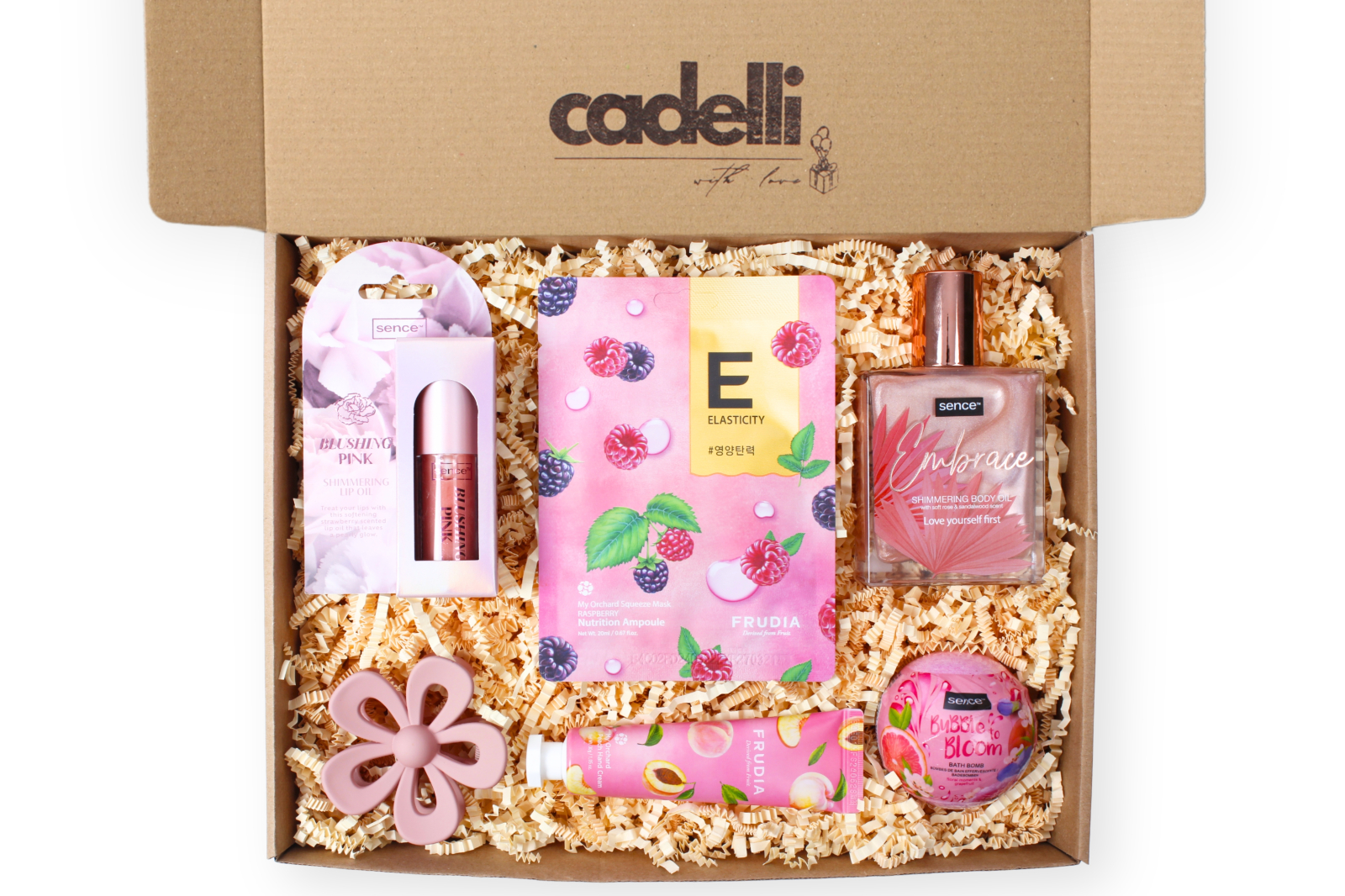 Ulei strălucitor pentru corp Embrace, Sence: paraffinum liquidum, C13-C16 isoparaffin, isopropyl palmitate, tribehenin, hydrogenated polybutene, sorbitan oleate, phenoxyethanol, parfum, tocopheryl acetate, sodium hyaluronate, mica, tetramethyl cetyloctahydronaphthalenes, hexyl cinnamal, linalool, trimethylcyclopentenyl methylisopentenol, juniperus virginiana oil, linalyl acetate, alpha-isomethyl ionone, vanillin, limonene, citrus aurantium peel oil, dimethyl phenethyl acetate, CI 77891 (titanium dioxide), CI 77491, CI 77861.