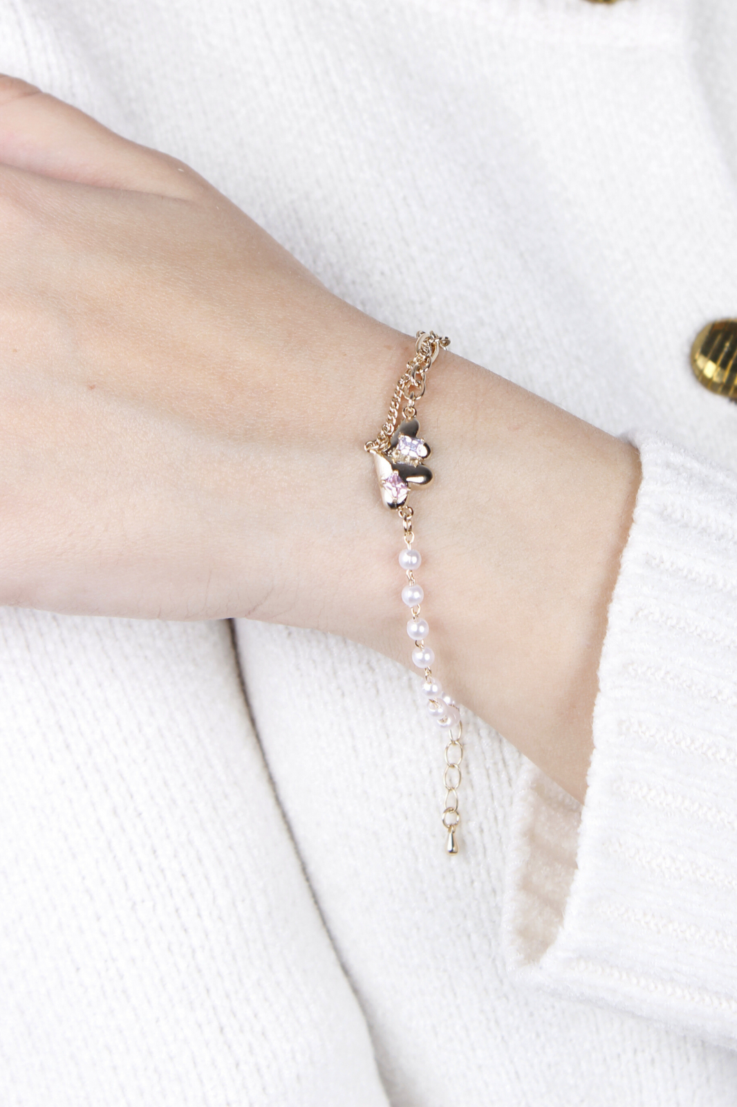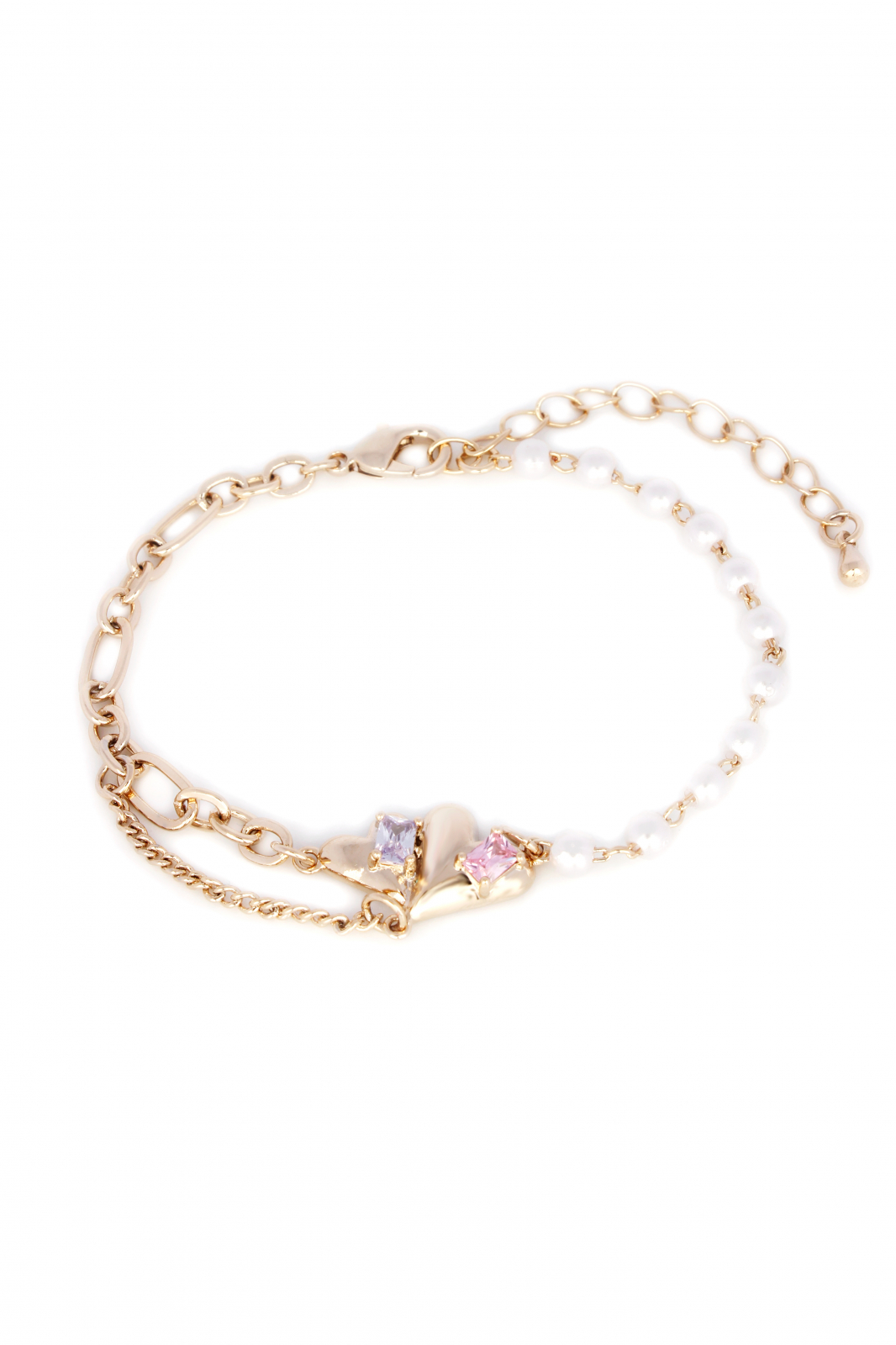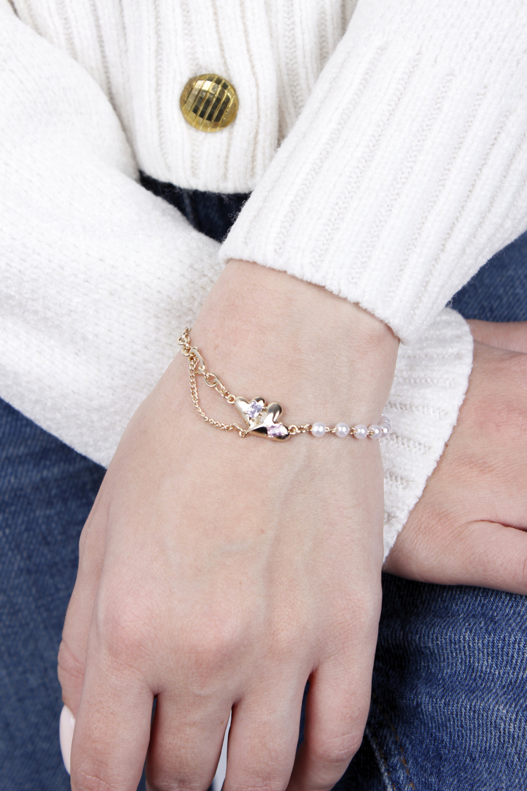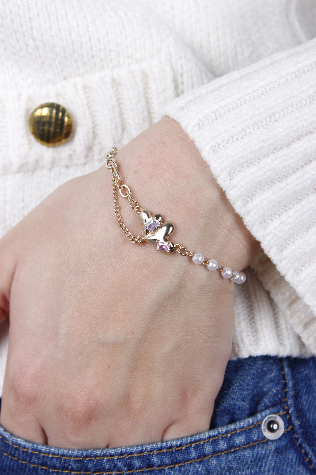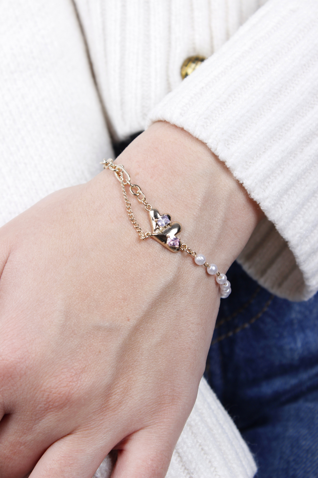 Brățară placată cu aur 18k, cu un motiv de inimă decorată cu zirconiu roz, ideală pentru un stil elegant.