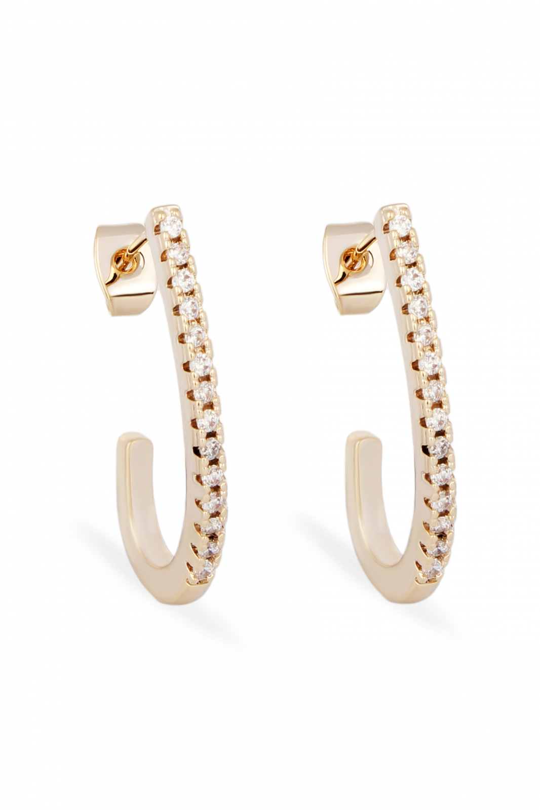 Cercei eleganți, cu pietre de zirconiu minimaliste dispuse într-un model pavé, placați cu aur 18k.