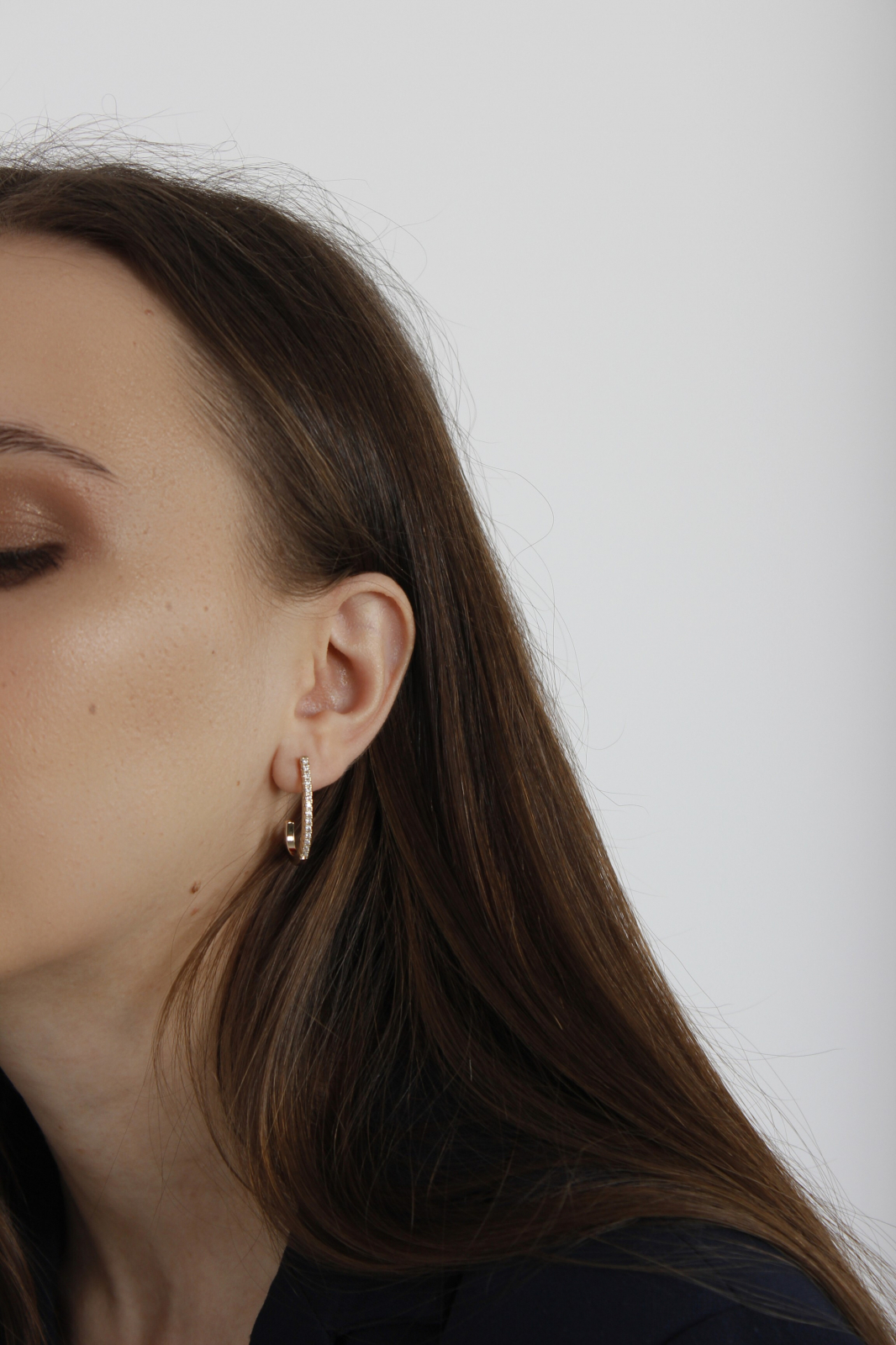 Cu un design rafinat și detalii atent lucrate, acești cercei îmbină eleganța clasică cu o strălucire discretă. Pietrele mici de zirconiu, dispuse în stil pavé, creează un efect delicat de lumină, completând perfect linia ușor alungită a cerceilor. Ideali pentru ocazii speciale sau pentru momentele în care îți dorești să te faci remarcată, acești cercei devin rapid accentul central al oricărei ținute.