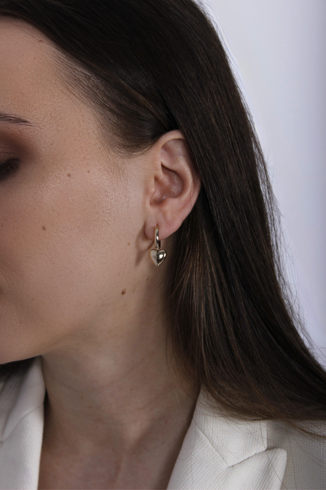 Cercei placați cu aur 18k, în formă de inimă cu un design delicat și o strălucire fină