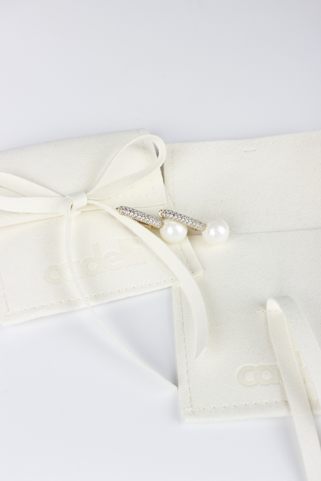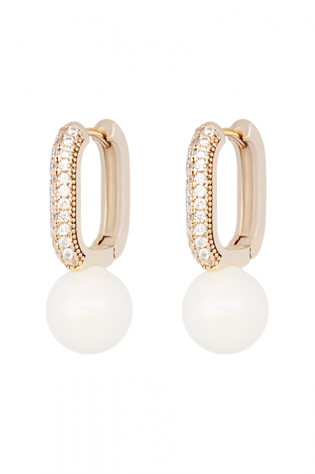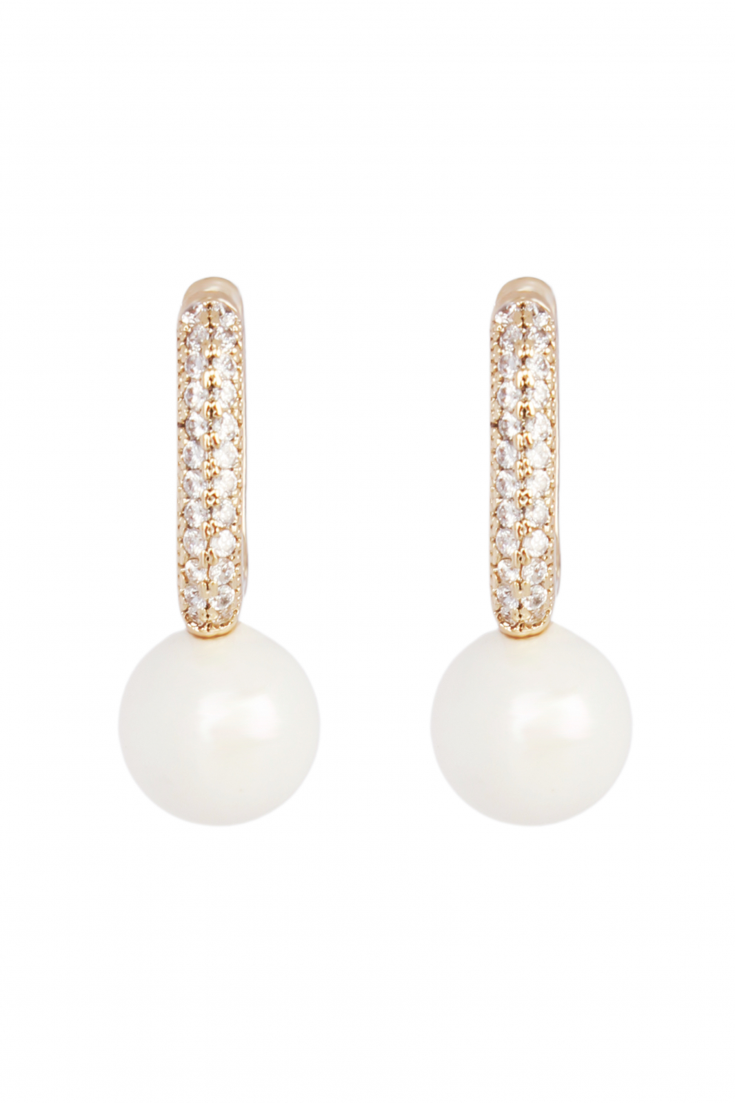 Cercei eleganți, accesorizați cu perlă și pietre de zirconiu minimaliste, placați cu aur 18k.