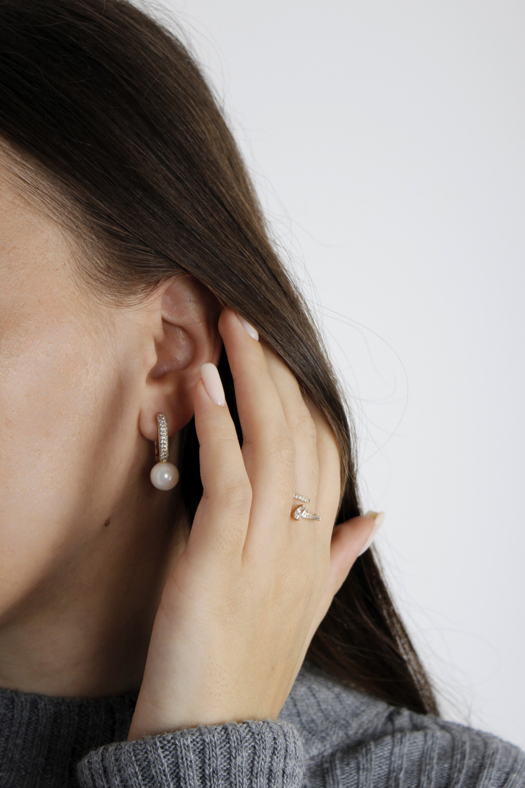 Un mix perfect între clasic și modern, acești cercei lungi combină strălucirea pietrelor de zirconiu dispuse în stil pave cu eleganța atemporală a perlei. Acești cercei aduc un plus de încredere și strălucire subtilă fiecărei ținute.