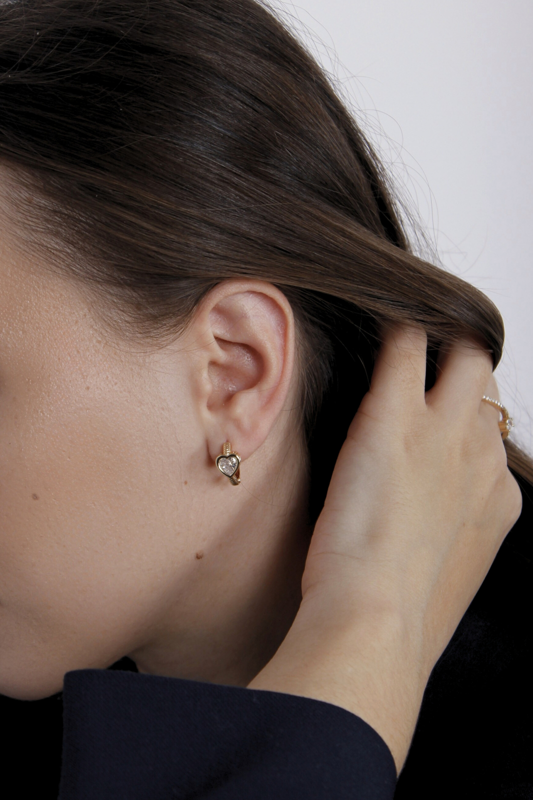 Acești cercei cu formă de inimă accesorizați cu piatră de zirconiu albă adaugă o notă subtilă de feminitate și romantism. Perfecți pentru întâlniri speciale sau zile în care vrei ca detaliile să vorbească în locul tău.