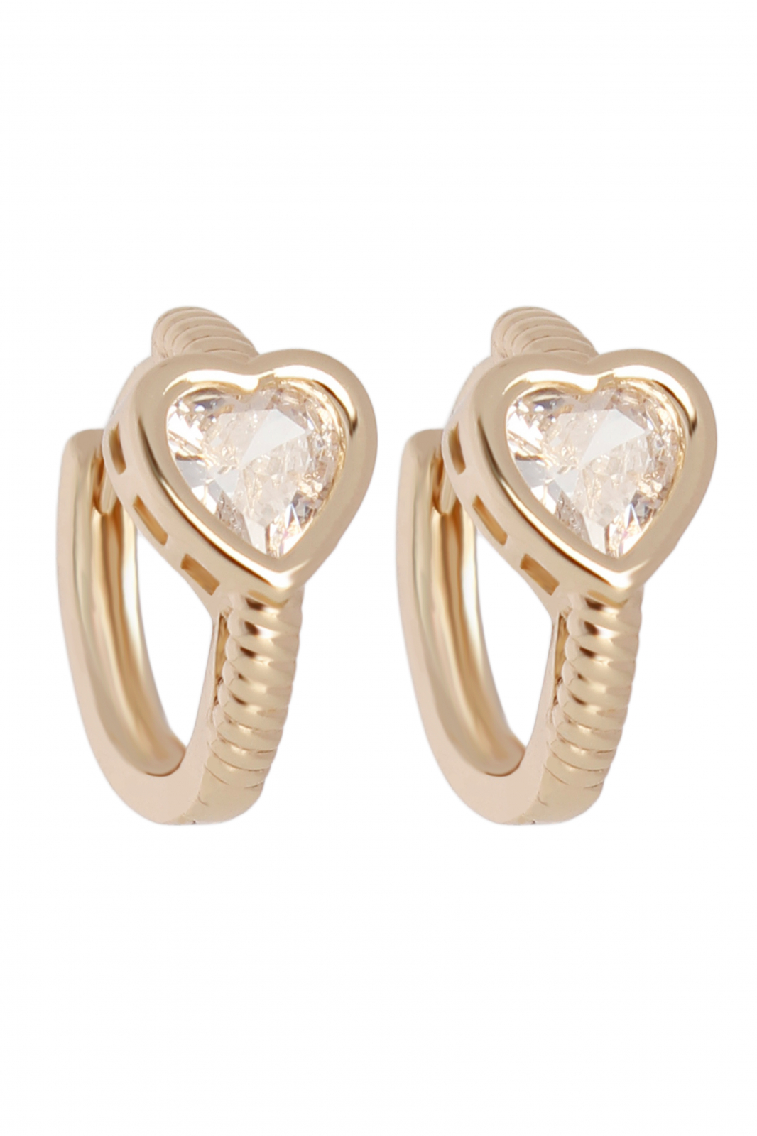 Cercei placați cu aur 18k, cu piatră de zirconiu  în nuanțe calde, în formă de inimă.