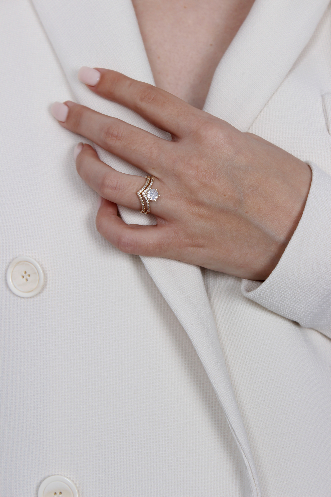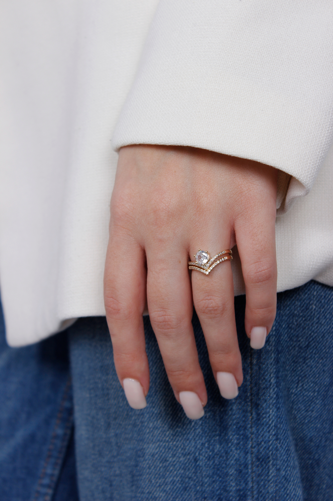 Un set versatil și modern, format din două inele care inspiră eleganță si feminitate. Fiecare piesă este decorată cu pietre zirconii mici pavé, creând o strălucire subtilă, dar constantă. Combinația celor două inele adaugă profunzime și volum, oferind purtătoarei opțiuni în funcție de stil și ocazie.