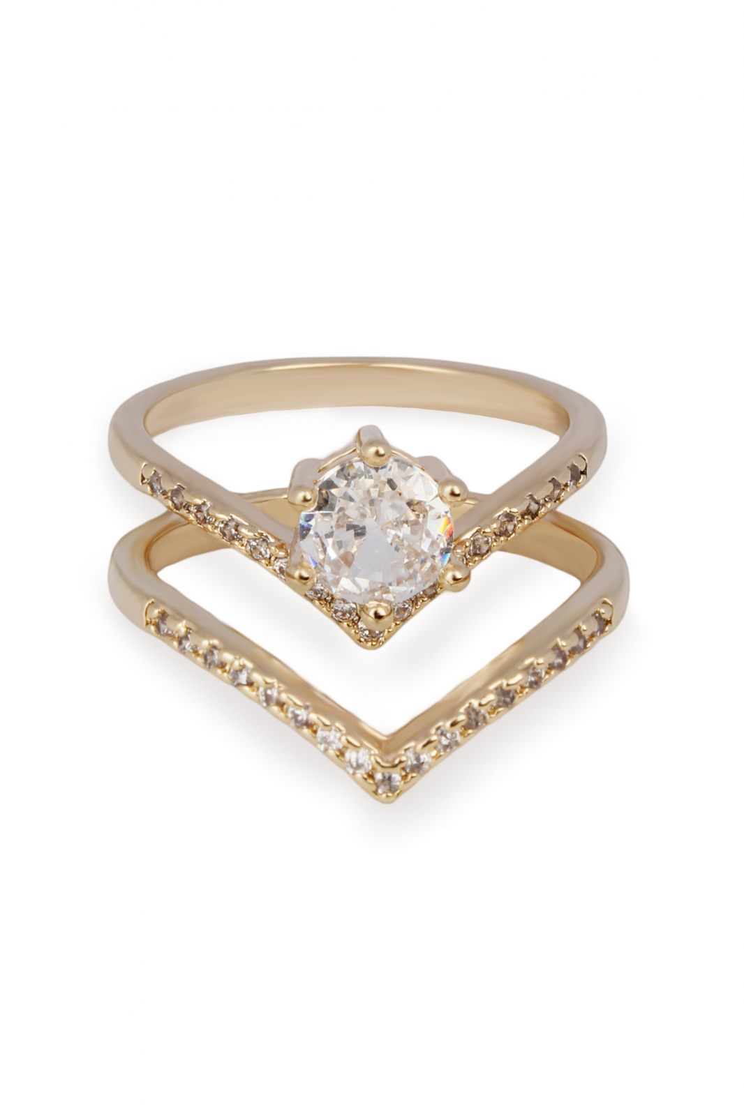 Inel placat cu aur 18k, format din două părți, cu zirconiu incolor dispus în două rânduri fine, pentru un efect de strălucire intensă și uniformă.