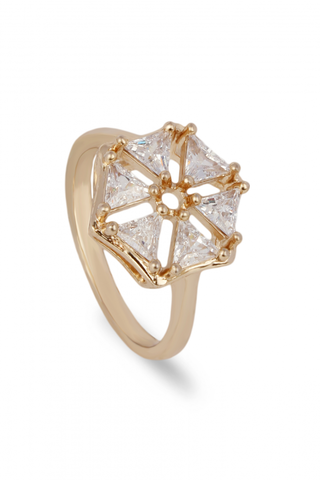Inel placat cu aur 18k, decorat cu o piatră de zirconiu, într-un design clasic și elegant.