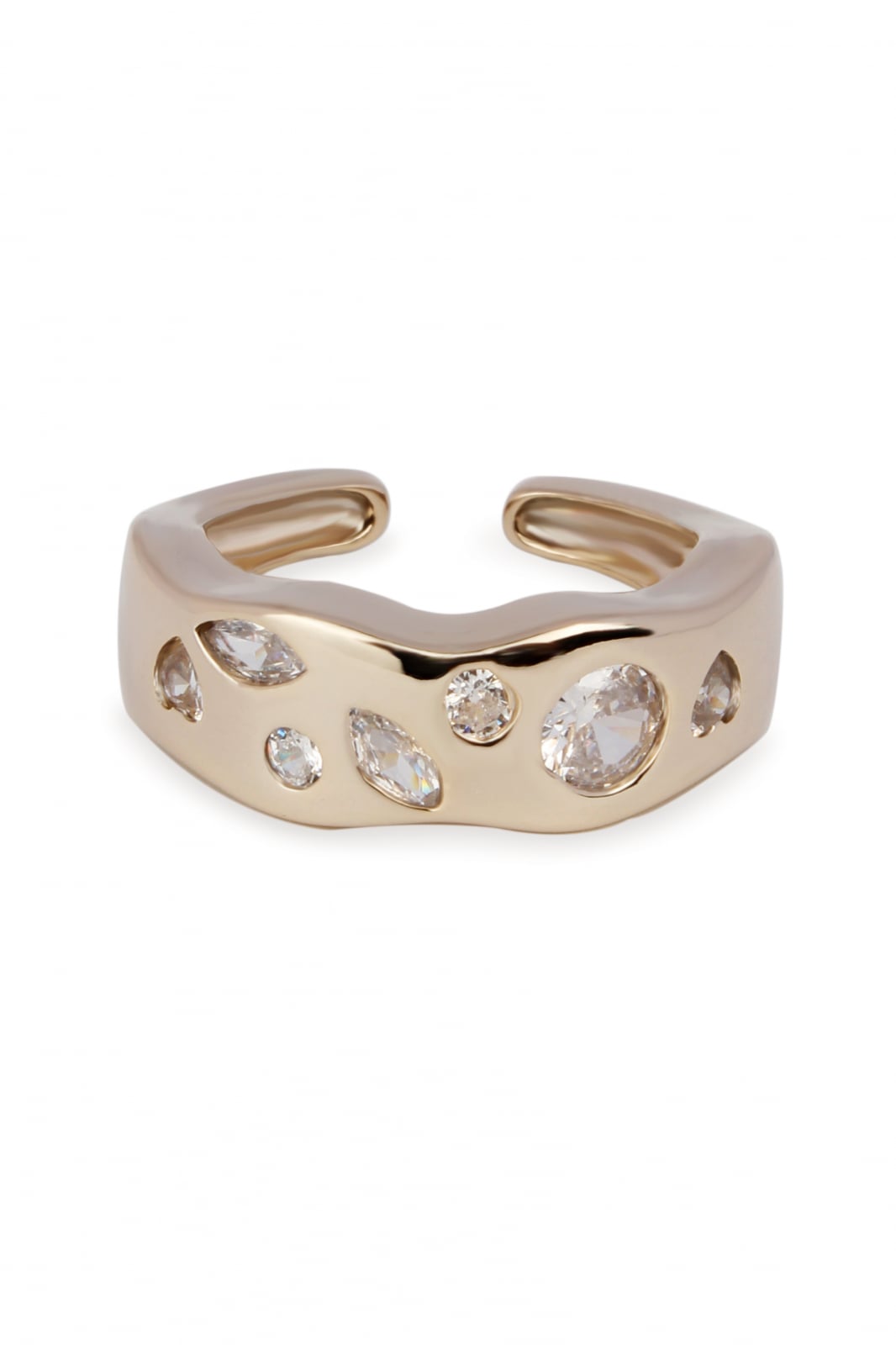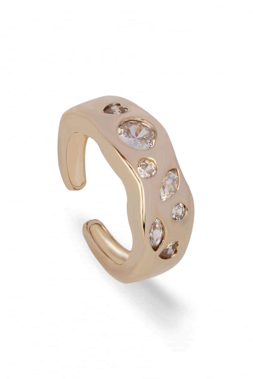 Inel placat cu aur 18k, cu pietre albe de zirconiu, pentru un accent stilistic memorabil.