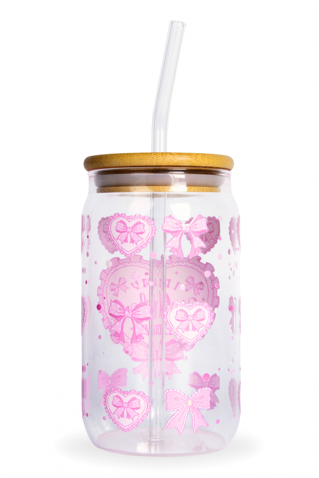 Pahar din sticlă borosilicată, capac din bambus natural și pai tot din sticlă — ideal pentru băuturi reci și calde. Personalizare realizată cu folie UV DTF dublu printată, rezistentă la zgârieturi și apă, cu imprimeu vizibil și din interiorul paharului. Folia se fixează prin adeziv UV curabil, oferind aderență superioară și imprimare intensă, durabilă în timp.