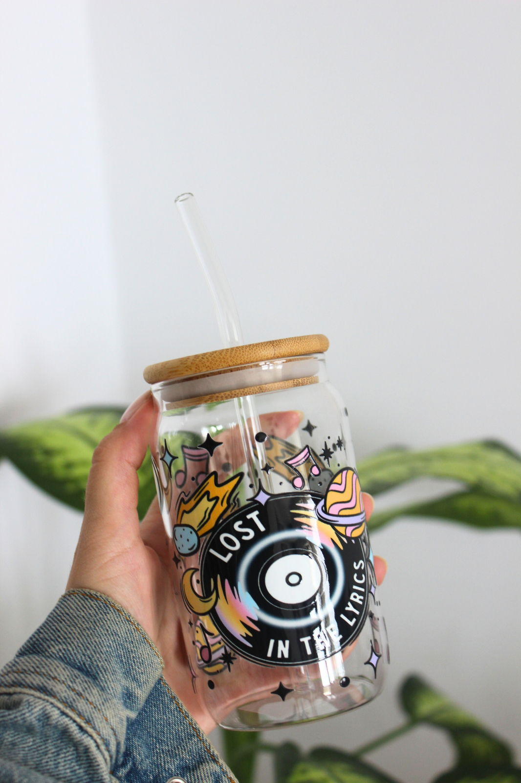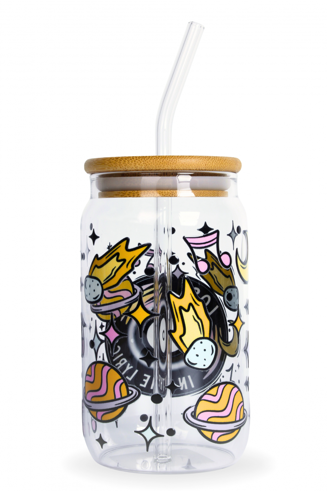 Acest pahar din sticlă surprinde perfect bucuria și magia muzicii, având un design cosmic: planete colorate, stele, meteoriți, note muzicale și discul de vinil “Lost in the lyrics” în centru. Este alegerea ideală pentru momentele în care vrei să te deconectezi, să visezi sau să-ți încarci bateriile cu băutura preferată pe fundalul piesei favorite. Un cadou original pentru prieteni pasionați de muzică, artiști sau adolescenți.