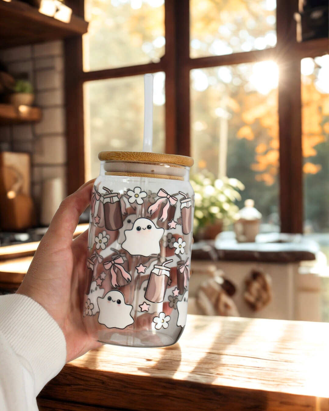 Pahar: Pahar din sticlă borosilicată, capac din bambus natural și pai din sticlă — ideal pentru băuturi reci și calde. Personalizare realizată cu folie UV DTF dublu printată, rezistentă la zgârieturi și apă, cu imprimeu vizibil și din interiorul paharului. Folia se fixează prin adeziv UV curabil, oferind aderență superioară și imprimare intensă, durabilă în timp.